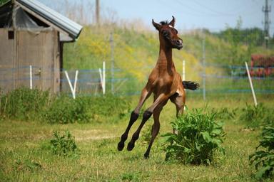 Keywords: horse foal suckling brown mold thoroughbred arabian pasture gallop