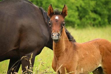 Keywords: horse foal suckling brown mold thoroughbred arabian pasture meadow grass