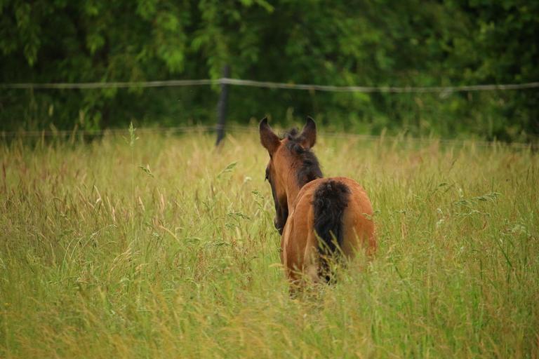 Keywords: horse foal suckling brown mold thoroughbred arabian pasture meadow