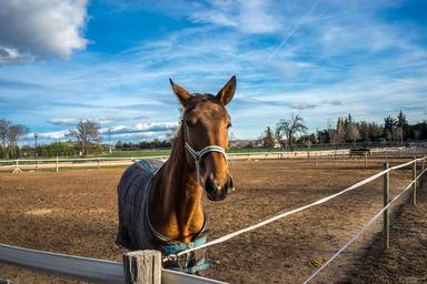Keywords: horse freedom tame block brown sky blue nature serenity screen saver horseshoe landscape