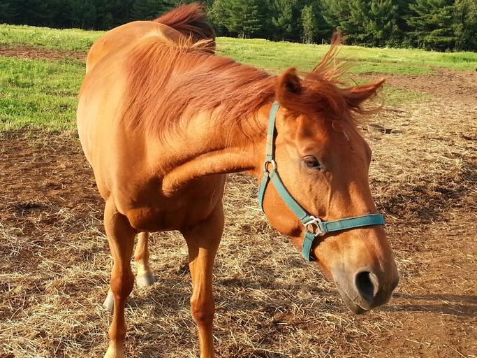 Keywords: horse horses horseback riding animal outdoor enclosure chestnut