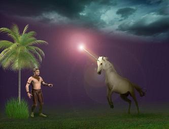 Keywords: horse man fantasy unicorn tree coconut clouds magic myth magical stallion mare grass