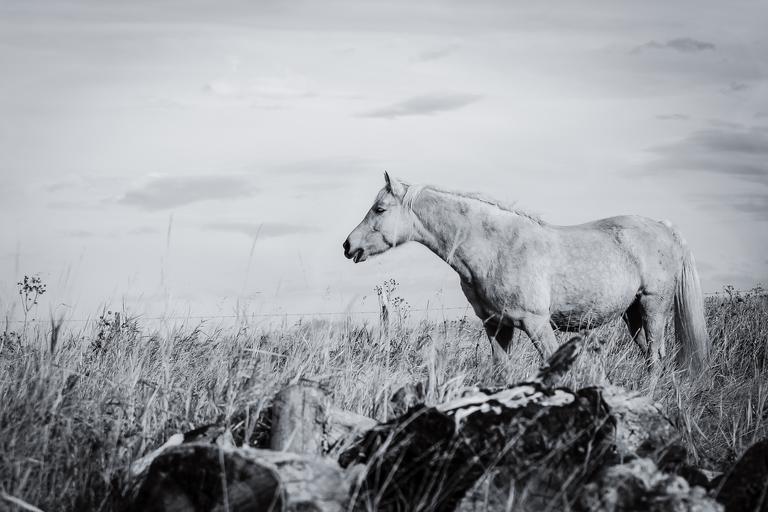 Keywords: horse meadow animal mammal ranch grass pasture equestrian countryside equine rural black and white bw nature