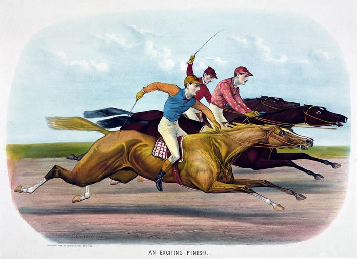 Keywords: horse racehorse horses racehorses racing jockey jockeys silks vintage painting art i cameron bright colorful picturesque equine animals