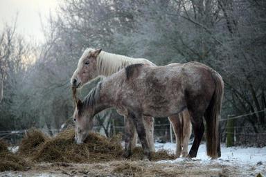 Keywords: horse snow winter frost mold thoroughbred arabian hay meadow pasture wintry