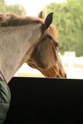 Keywords: horse stall looking head animal mammal barn equine rural ranch purebred mare gate equestrian pet face thoroughbred domestic mane neck brown stable