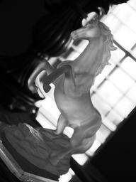 Keywords: horse statue glass window black and white
