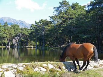 Keywords: horse watering is water trough bassa d'oles val d'aran lake pyrenee catalunya