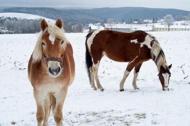 Keywords: horse winter snow nature coupling field landscape pony animal mount graceful stand pasture fence meadow animal world white paddock brown