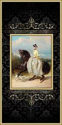 Keywords: horse woman victorian equestrian horsemanship lady riding rider dog spaniel elegant feminine gallop trot sidesaddle frame gilded eighteenth century gown hat