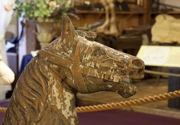 Keywords: horse wooden carousel unfinished bare retro nostalgic merry-go-round vintage fun childhood