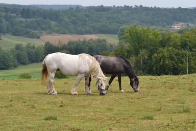 Keywords: horses animals nature mare landscape pre prairie field grass fields feed browse rural green horse summer dordogne france