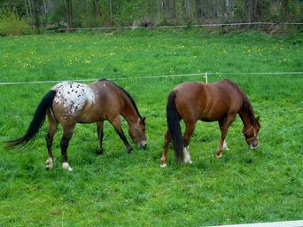 Keywords: horses brown graze pasture green nature