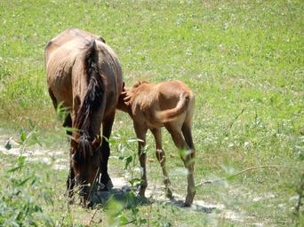 Keywords: horses foal mare with foal pasture young animal