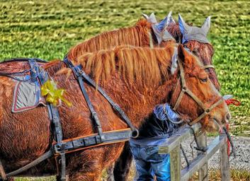 Keywords: horses horse sweat shooting harness earmuffs bow yellow