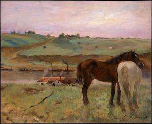 | Keywords: Horses in a Meadow.jpg Artwork Creator Edgar Degas 1871 Oil on canvas cm 31 8 40 National Gallery of Art bottom right E Degas 71 object history From http //www nga gov/fcgi-bin/tinfo_f object 91222 detail prov National Gallery of Art Purchased 1872 from the artist by Durand-Ruel Paris ; sold 1874 to Jean Baptiste Faure 1830-1914 Paris; returned to Degas; gift to James Tissot 1836-1902 Paris; purchased 1890 by Durand-Ruel Paris ; Durand-Ruel New York from 1925; 1 Mr and Mrs Jean D'Alayer of the Durand-Ruel family 1951 to 1960 2 Janet Traeger Salz Inc New York by 1991; sale Sotheby's London 30 June 1992 no 4 bought in ; sold 1995 to NGA 1 Early provenance per 1992 Sotheby's sale catalogue 2 Lenders to a Degas exhibition at the Berner Kunstmuseum in 1951 and according to a label on the painting's stretcher the lenders to a 1960 exhibition at Galerie Durand-Ruel Paris credit line National Gallery of Art http //www nga gov/collection/sfp/flash/image_movs/realism/1995_11_1-zoom htm PD-old-auto 1917 Paintings of horse racing by Edgar Degas Paintings of horses 1871 paintings French paintings in the National Gallery of Art Images from Sotheby's White horses in art Bay horses in art 1870s paintings from France |