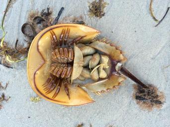 Keywords: horseshoe crab crab beach sand nature seaweed shell