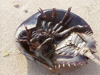 Keywords: Horseshoecrab2.jpg en Horseshoe Crab on the beach Delaware USA ru ечехвост на пляже штат Делаве США My personal photo Shura007 2004-06-28 My own file Limulus polyphemus