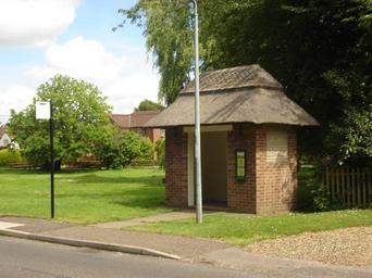 Keywords: Horsham St Faith Bus Stop.JPG thatched roof bus stop at St Faiths Norfolk own Northmetpit 2008-07-10 Horsham St Faith Thatched roofs in Norfolk England Bus shelters in Norfolk England