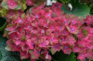 Keywords: hortensia hydrangea pink green flower nature flora bloom garden spring plant summer leaf shrub bush colorful outdoors leaves blossom blue blooming blossoming