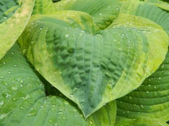 Keywords: hosta leaf flora nature gardening rain water green droplets raindrops liquid drops of water rain drops moist foliage plant garden