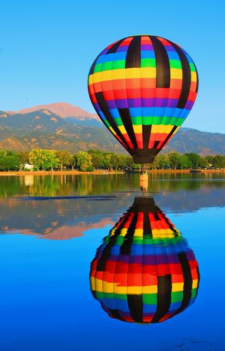 Keywords: hot air balloon reflection pikes peak mountain colorado memorial park balloon adventure lake