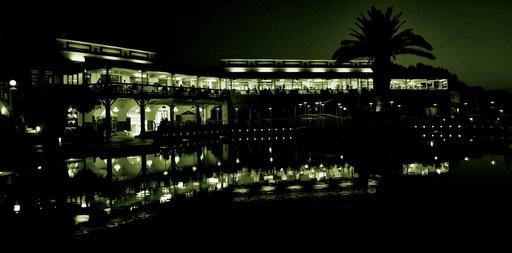 Keywords: hotel crete palm tree reflection evening pool resort building vacation night