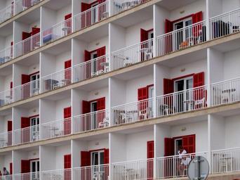 Keywords: hotel front balconies red white housewife facade live architecture building residential buildings mallorca