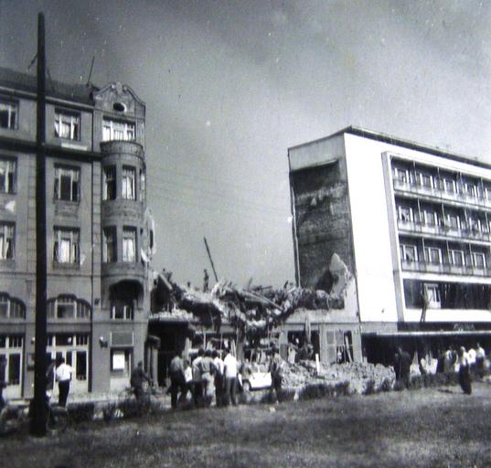 | Keywords: Hotel Skopje, zemjotres.jpg mk Земјот есот во Скопје од 1963 година хотел Скопје на улица а шал Тито en 1963 Skopje earthquake Hotel Skopje on Marshal Tito Street DARM archive 1963-07-26 The State Archives of the Republic of Macedonia DARM Skopje Department author other versions Custom license marker 2016 05 19 Anonymous-EU Wikipedian in Residence at DARM 1963 Skopje earthquake | ||||