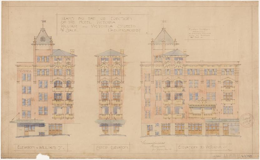 Keywords: archives state records nsw staterecordsnsw newsouthwales blackandwhite hotel sydney darlinghurst pub text black and white This plan is part of our new gallery featuring items from series NRS 9590: Plans of Licensed Premises, Hotel Plans. The plans which comprise this series are largely architect’s plans of proposed hotels, and major and minor alterations and additions to existing hotels submitted for approval to NSW Licensing Courts in the Sydney Metropolitan District. Hotel Victoria, William and Victoria Streets, Darlinghurst. Plans for re-erection, corner elevation, elevations to William and Victoria Streets. Architect E Lindsay - Thompson, King Street, Sydney. Lodged 23 January 1914 Dated: signed 30 November 1914 Rights: www.records.nsw.gov.au/about-us/rights-and-permissions We'd love to hear from you if you use our photos/documents. Many other photos in our collection are available to view and browse on our website using Photo Investigator. This plan is part of our new gallery featuring items from series NRS 9590: Plans of Licensed Premises, Hotel Plans. The plans which comprise this series are largely architect’s plans of proposed hotels, and major and minor alterations and additions to existing hotels submitted for approval to NSW Licensing Courts in the Sydney Metropolitan District. Hotel Victoria, William and Victoria Streets, Darlinghurst. Plans for re-erection, corner elevation, elevations to William and Victoria Streets. Architect E Lindsay - Thompson, King Street, Sydney. Lodged 23 January 1914 Dated: signed 30 November 1914 Rights: www.records.nsw.gov.au/about-us/rights-and-permissions We'd love to hear from you if you use our photos/documents. Many other photos in our collection are available to view and browse on our website using Photo Investigator. |
