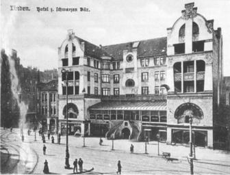 | Keywords: Hotel zum Schwarzen Bär in Linden.jpg en Hotel in Linden Hannover Germany de Hotel zum Schwarzer Bär in Linden heute Stadtteil von Hannover Buch Walter Buschmann LINDEN - Geschichte einer Industriestadt im 19 Jahrhundert Hannover 2012 S 275 Abb 254 Als Bildquelle dort angegeben Der Profanbau I Leipzig 1901 S 232 Anonymous work bis 1901 Schwarzer Bär Hannover PD-Art |