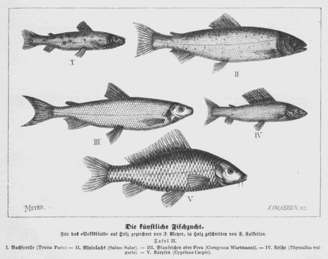 Keywords: Hottinger Volksblatt 1878 236 Bild1.jpg künstliche Fischzucht Tafel II man-made fish farming Table II Volksblatt Eine Wochenzeitschrift mit Bildern Herausgegeben von Dr Christlieb Gotthold Hottinger self scanned Seite 236 1878 Straßburg im Elsaß Verlag von Dr Hottingers Volksblatt PD-old Hottinger's Volksblatt 1878 Fish farming in Germany Aquaculture fish |