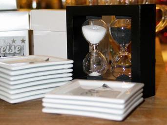 Keywords: hourglass black white black white contrasts porcelain white porcelain gedeckter table frame plate stacked egg timer time