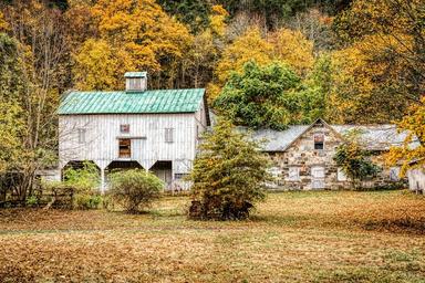 Keywords: house barn dutch country fall foliage scene seasonal colorful