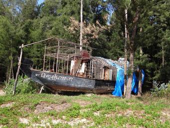 Keywords: house boat abandoned weathered wreck vessel damaged forest karwar india