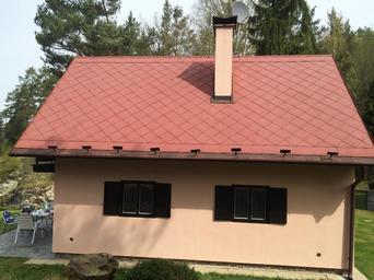 Keywords: house cottage window chimney roof orange spring