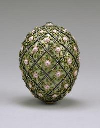 | Keywords: House of Fabergé - Rose Trellis Egg - Walters 44501.jpg Walters Art Museum artwork Creator House of Fabergé On April 22 1907 Tsar Nicholas II presented this egg to his wife Alexandra Fedorovna to commemorate the birth of the tsarevich Alexei Nicholaievich three years earlier Because of the Russo-Japanese War in 1904 no Imperial Easter eggs had been produced for two years The egg contained as a surprise a diamond necklace and an ivory miniature portrait of the tsarevich framed in diamonds now lost Fabergé's invoice dated April 21 1907 listed the egg at 8 300 rubles 1907 gold enamel diamonds cm 7 7 5 9 accession number 44 501 31663 Tsar Nicholas II Anichkov Palace St Petersburg April 21 1907 by purchase Tsarina Alexandra Fedorovna Anichkov Palace St Petersburg April 22 1907 by gift Kremlin Armory 1917 transferred by the Kerensky government from the palace to the armory Alexandre Polovtsoff Paris Henry Walters city Baltimore Walters Art Museum Henry Walters Acquired by Henry Walters 1930 Objects of Vertu Precious Works of the Eighteenth Century The Walters Art Gallery Baltimore 1984 Fabergé in America The Metropolitan Museum of Art New York; Fine Arts Museums of San Francisco San Francisco; Virginia Museum of Fine Arts Richmond; New Orleans Museum of Art New Orleans; The Cleveland Museum of Art Cleveland 1996-1997 Carl Fabergé Nationalmuseum Stockholm 1997 The Fabergé Menagerie The Walters Art Museum Baltimore; Columbus Museum of Art Columbus; Portland Art Museum Portland 2003-2004 Artistic Luxury The Cleveland Museum of Art Cleveland; Fine Arts Museums of San Francisco San Francisco 2008-2009 place of origin St Petersburg Russia PD-old-auto 1923 Media contributed by the Walters Art Museum needs category review Rose Trellis Fabergé egg |