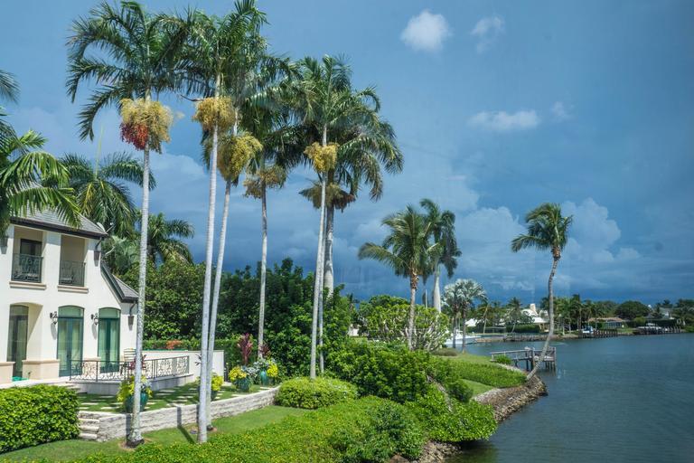 Keywords: house palms architecture coast florida ocean view sea skyline water scene colorful