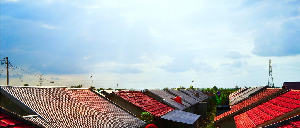 Keywords: house roof housing residential residence home building exterior red roof sky day