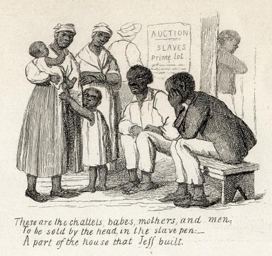 | Keywords: House That Jeff Built p4.jpg en Panel from cartoon The House That Jeff Built satirizing Jefferson Davis slavery and the Confederacy Panel 4 showing slaves These are the chattels babes mothers and men to be sold by the head in the slave pen; ” A part of the house that Jeff built 1863-07 Cartoon The House That Jeff Built 1863 David Claypoole Johnston other versions PD-old-70-1923 The House That Jeff Built Uploaded with UploadWizard | ||||