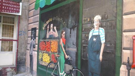 Keywords: house wall graffiti picture mural art budapest street view fruit and vegetable