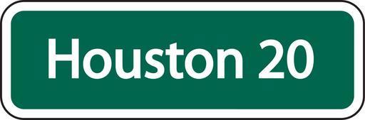 Keywords: houston ahead distance 20 twenty miles information highway sign signage motorists travel roadsign
