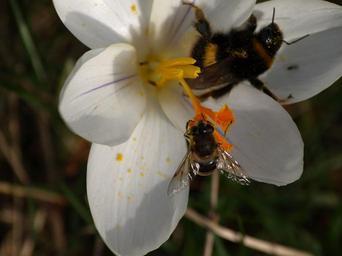 Keywords: hoverfly crocus hummel white frühlingsanfang pollination insect blossom bloom flora