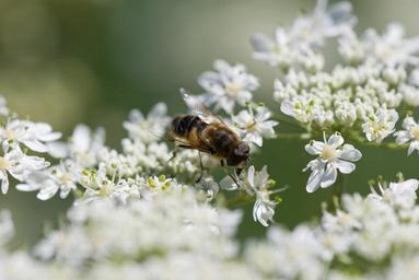Keywords: hoverfly flower fly blossom summer nature insect close up white