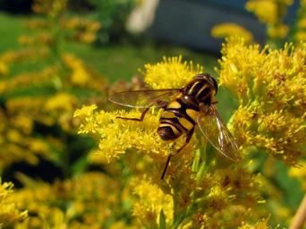 Keywords: hoverfly fly insect yellow wings wildlife hover nectar