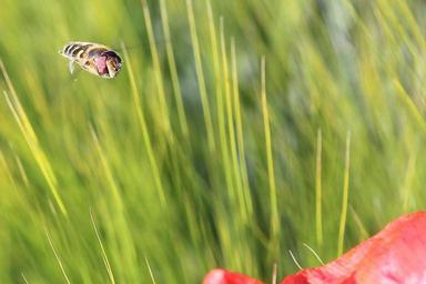 Keywords: hoverfly insect fly approach blossom bloom field macro close wing