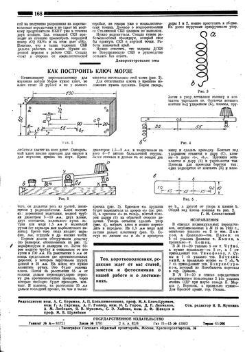| Keywords: HowMakeMorseKey.JPG ru статья из жу нала Радиоф онт за 1930 г en How To Make Morse Key by G M Sokolovsky Radiofront magazine 1930 1930 Радиоф онт 1930 28-29 с 168 Г Соколовский PD-Russia-2008 Uploaded with UploadWizard Toy or training keys Amateur radio in print media |