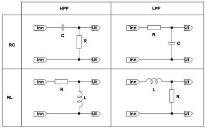Keywords: HP LP RC RL NO.jpg en The four one-pole filter configurations Own WikiNO Bruker KjellElec 2008 Linear filters