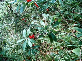 Keywords: HPIM7608b.JPG en Daphne mezereum fruting plant poisonous plant Europe Slovakia mountains Malá Fatra cs Daphne mezereum lýkovec plodící keř jedovatý Malá Fatra Jánošíkove diery own I Sáček senior Daphne mezereum Flóra Malej Fatry