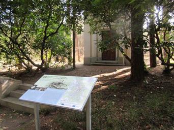 Keywords: Hřbitov Bor 12.JPG cs Infodeska naučné stezky před hrobkou na borském hřbitově own Zákupák 2015-04-09 Lesní hřbitov Nový Bor Sklářská stezka Nový Bor
